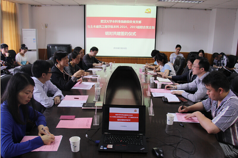 5月26日下午,完美电竞会议室洋溢着喜庆的气氛,在学校相关职能部门及共建双方领导、党员同志们的见证下,本科生院教务处党支部书记朱俊勇与完美电竞本科2014、2015级联合党支部书记刘应签订结对共建协议,共同打造服务型党支部,携手促进学风建设。完美电竞官网机关党委书记梁涛、学工部副部长仲华、本科生院教务处副处长朱俊勇、组织部党建办主任李樵、公司党委书记雷世富、党委副书记谢献谋、学工办主任肖娴娴、教学办主任胡俊峰、全体辅导员和双方支部成员出席签约仪式。仪式由公司党委副书记谢献谋主持。